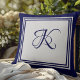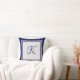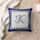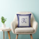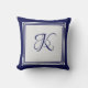 Elegant blue grey square pattern initial monogram throw pillow