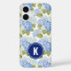 Elegant Blue Hydragea Flowers Pattern Monogram Case-Mate iPhone Case
