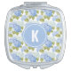 Elegant Blue Hydragea Flowers Pattern Monogram Compact Mirror