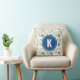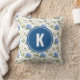 Elegant Blue Hydragea Flowers Pattern Monogram Throw Pillow