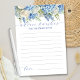 Elegant and feminine "something blue before I do" bridal shower design with watercolor-painted floral arrangements of blue hydrangea flowers, greenery, and white roses.