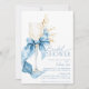 Elegant Blue Hydrangea Bow Champagne Bridal Shower Invitation