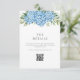 Create your own personalized wedding enclosure cards featuring elegant typography and watercolor blue hydrangea floral illustration.