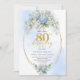 Elegant Blue Hydrangea Gold 80th Birthday Invite