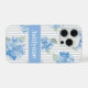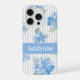 Elegant Blue Hydrangea Pattern Gray Stripe Name iPhone Case