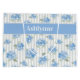 Elegant Blue Hydrangea Pattern Gray Stripe Name Large Gift Bag