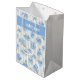 Elegant Blue Hydrangea Pattern Gray Stripe Name Medium Gift Bag