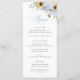 Floral Blue Hydrangea Greenery Wedding Menu. Elegant Floral Dusty Blue Hydrangea and Sunflowers Wedding Menu Card