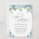 Elegant Blue Hydrangea Watercolor Greenery Wedding Invitation