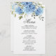 Elegant Blue Hydrangea Wedding Dinner Menu