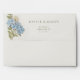This beautifully designed wedding envelope features an exterior adorned with a delicate bouquet of blue hydrangeas, ivory blooms, and lush green foliage on a soft cream background. The elegant script adds a personal touch, making it a refined choice for your wedding correspondence. The envelope seamlessly coordinates with the Blue Hydrangea wedding stationery suite, making it perfect for romantic, garden-inspired, or vintage-themed weddings. Ideal for invitations, RSVP cards, or thank-you notes, this envelope adds a cohesive and polished finish to your wedding mailing.