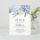 Elegant Blue Hydrangea White First Birthday Party Invitation