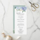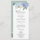 This elegant blue hydrangea white wedding program is perfect for a spring or summer wedding. The classic floral design features soft powder blue watercolor hydrangeas accented with neutral blush pink flowers and green leaves. Include the name of the bride and groom, the wedding date and location, thank you message, order of service, bridal party and an optional "in loving memory" memorial.