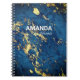 Elegant blue marble art faux gold glitter monogram notebook
