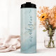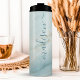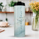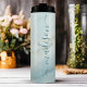 Elegant Blue Marble Chic Signature Script Name Thermal Tumbler
