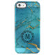 Elegant Blue Marble Stone Monogram Uncommon iPhone Case