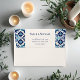 Complete your wedding stationery with this elegant envelope featuring a luxurious blue Mediterranean tile design. Intricate cobalt and turquoise geometric and floral patterns add a sophisticated touch, while the clean space in the center is perfect for addressing your guests. Ideal for pairing with matching invitations, Save the Date cards, RSVP cards, and thank you notes for a coordinated Mediterranean-inspired wedding set.