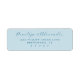 This elegant label features a serene pastel blue background with a minimalist layout, creating a calming and sophisticated atmosphere. The design showcases flowing script typography for the names at the top, paired with clean serif fonts for address details, offering a harmonious blend of formality and accessibility. Perfect for formal occasions, this customizable label is ideal for weddings or special events, providing a refined touch to invitations or keepsakes. Its balanced composition and gentle color palette convey an air of elegance and simplicity, making it a versatile choice for any occasion.