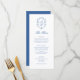 Elegant Blue Monogram Crest Formal Script Wedding Menu