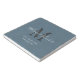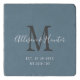 Give a perfect gift to the bride and groom with this Elegant Blue Monogram Name Established Newlyweds trivet. This has a modern customizable design in dusty blue, white and grey. Bride and groom's first names are on the center in modern white handwriting script lettering and initial of new last name is in grey. Established date is across the bottom area.