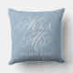 Elegant Blue Mr and Mrs Script Custom Monogram Throw Pillow