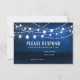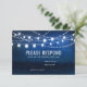 Elegant blue night and silver string lights wedding rsvp card. The text can be changed using right the "Details" menu. To fit everything to your needs please click the "Customize" button and you can text style, backround and paper colour change. Other colors are available. You can change the paper type on the right side of the "Compare Papers" menu. Please contact me if you need help, for matching items or you have special wishes.