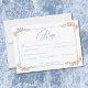 Step into a world of timeless elegance with our exquisite Baroque wildflower wedding response card with dinner choices. Soft pastel watercolor blooms adorn the edges. Your wedding details appear in dusty blue, in sophisticated harmony. Perfect for couples who seek an invitation that whispers luxury, romance, and the charm of old-world grandeur. Let your wedding begin with a design as breathtaking as the day itself. Created by Simply Farmhouse Press.