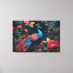 Elegant Blue Peacock in Colorful Garden Canvas Print