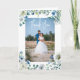 Cheerful white peony flowers and green watercolor leaves form a beautiful border around the married couple photo on this pretty blue floral spring wedding folded thank you card. Chic, modern handwritten script is in white overlay on your newlywed photograph. Add a 2nd sweet photo on the inside with your personalized message of thanks.