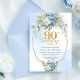 Elegant Blue Peony Gold 90th Birthday Invitation