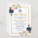 Elegant Blue Pink Floral Gold Frame Bat Mitzvah Invitation