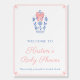 A blue and white watercolor ginger jar vase with pink bow decorates this party welcome sign design. Watercolor elements originally handpainted by me before being scanned into digital form. Shown here for a Baby Shower but all of the text can be customized to your needs. You can change the color of the Greek Key border by entering the design tool and changing the background color (to get there, "tap / click to personalize further"). If you choose a size other than shown in the sample, you might need to enter the design tool and change move the "Greek Key" background images.