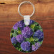 Elegant blue purple magenta green floral hydrangea keychain