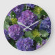 Elegant blue purple magenta green floral hydrangea large clock