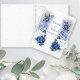 This romantic, vintage-inspired wedding suite features soft blue and white watercolor roses paired with navy blue classic cameo-style silhouette portraits of a couple framed in ornate oval borders. The refined navy blue calligraphy and clean white background create a timeless, elegant aesthetic reminiscent of the Regency era inspired romance. Perfect for Regency, vintage, classical, or garden-style weddings.