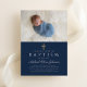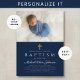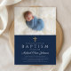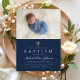 Elegant Blue Religious Cross Boy Baptism Photo Invitation