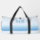 Elegant Blue Retro Stripes Monogram Duffle Bag. Create your own personalized duffle bag with custom name initials