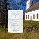 A cute blue ribbon and bow surrounds your elegant confirmation party garden flag to celebrate your little boy. A beautiful Christian cross is above the details for your baptized child. Lovely religious outdoor decor for your Catholic baptism or confirmation ceremony.