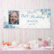 Elegant Blue Rose Floral Frame 80th Birthday Party Banner