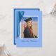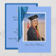 A unique card with an elegant blue, satin color scheme. Similar blue background on the back of the card containing details. Suitable for a high school or college graduation. The photo and all text are easily changed with the template. Selecting “Personalize this design” offers you several edit options to easily change the text (wording, plus type font, color, size, position) and to edit the design elements. You may also want to scroll down to the section “Transfer design to a product” for a few suggestions about other items this design can be used on.
