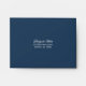An elegant blue self-addressed envelope with white text and a blue and white floral lining. Perfect for returning RSVP response cards.