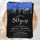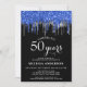 Elegant Blue Silver Black Glitter Drip 50 Birthday Invitation
