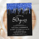 Elegant Blue Silver Black Glitter Drip 50 Birthday Postcard