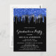 Elegant Blue Silver Black Glitter Drips Graduation Postcard