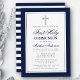 Elegant Blue Silver First Holy Communion Striped Invitation