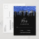 Elegant Blue Silver Glitter Drips Wedding RSVP Invitation Postcard