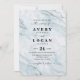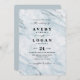 Elegant Blue & Silver Metallic Marble Wedding Invitation