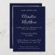 Invite guests to your wedding with this sophisticated invitation featuring elegant silver/grey script on a navy blue background. The back of the card includes a space to upload your favorite couple photo and personalize your initials. On the front, you can add all your wedding details. This design offers a timeless and stylish way to announce your special day.