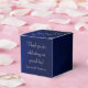 This is a stylish, rich looking wedding favor box, with your special message and your first names in silver on an elegant royal blue gradient background. A pretty silver swirl finishes off the top of the box. This favor box matches the Elegant Blue Silver Monogram Wedding Invitations in our store.