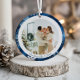 Elegant Blue Snowflake Double Side Christmas Photo Ceramic Ornament